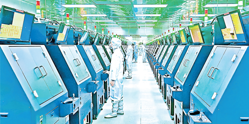 鄂州市利用毗邻以三安光电为主链的光谷区位优势,吸引和设立产业链上下游企业。携手武汉,助力湖北省打造世界级“光核心显示终端网络”产业集群。图为鄂州市葛店三安光电生产线一角。供图:通讯员 方中华