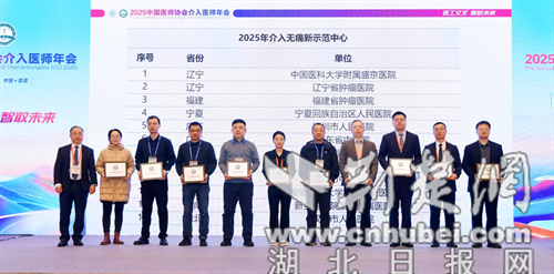 京中网讯(湖北日报)(通讯员 田胜男)近日,中华医学会介入医师年会2025年(CCI2025)在南京召开。会议上传来了好消息。襄阳市中心医院微创肿瘤病房凭借雄厚的技术能力和优质舒适的医疗服务,荣获“国家无痛介入示范中心”称号。该医院是襄阳市首家获此国家级荣誉的医疗机构,证明该院肿瘤微创介入医疗水平在全国名列前茅。肿瘤微创介入病房主任肖天林代表团队接受了牌匾。